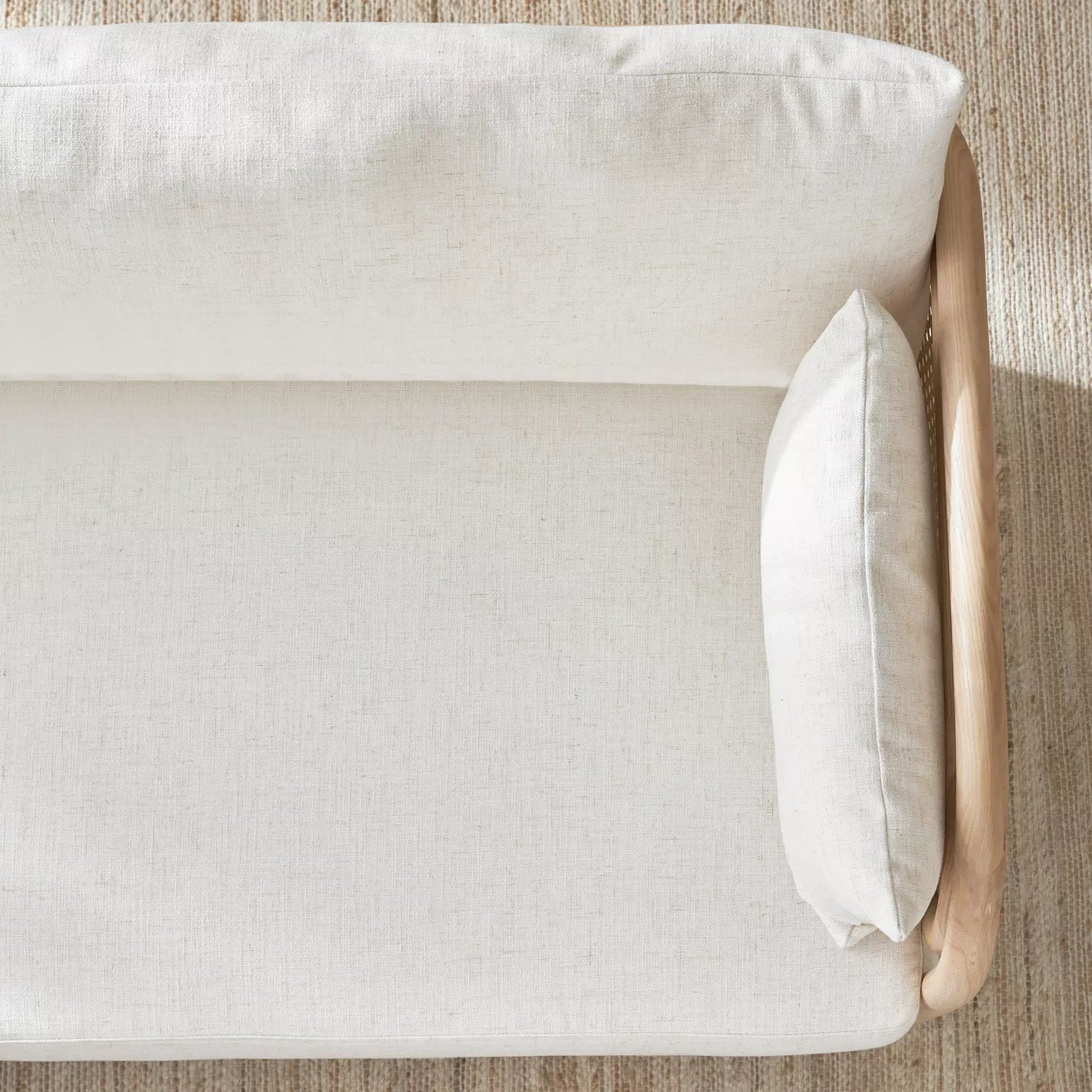 Classic Rattan Solid Wood 3 Seater Fabric Sofa- Natural Finish