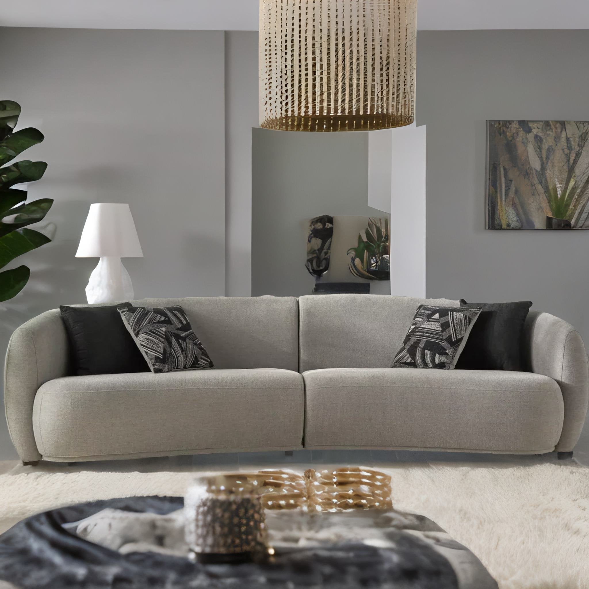 The premium fabric used in its construction not only adds to its visual appeal but also enhances its longevity and ease of maintenance. Fabric sofas are often preferred for their comfort and versatility, as they can complement various interior styles, from contemporary to traditional.