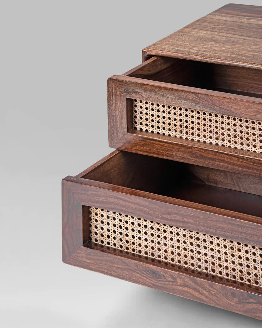 Classic Rattan Sheesham Solid Wood Brown Finish Bedside Table
