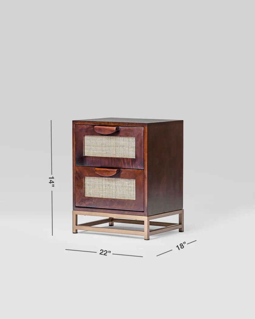 Modern Rattan Mango Wood Bedside Table and Iron Legs