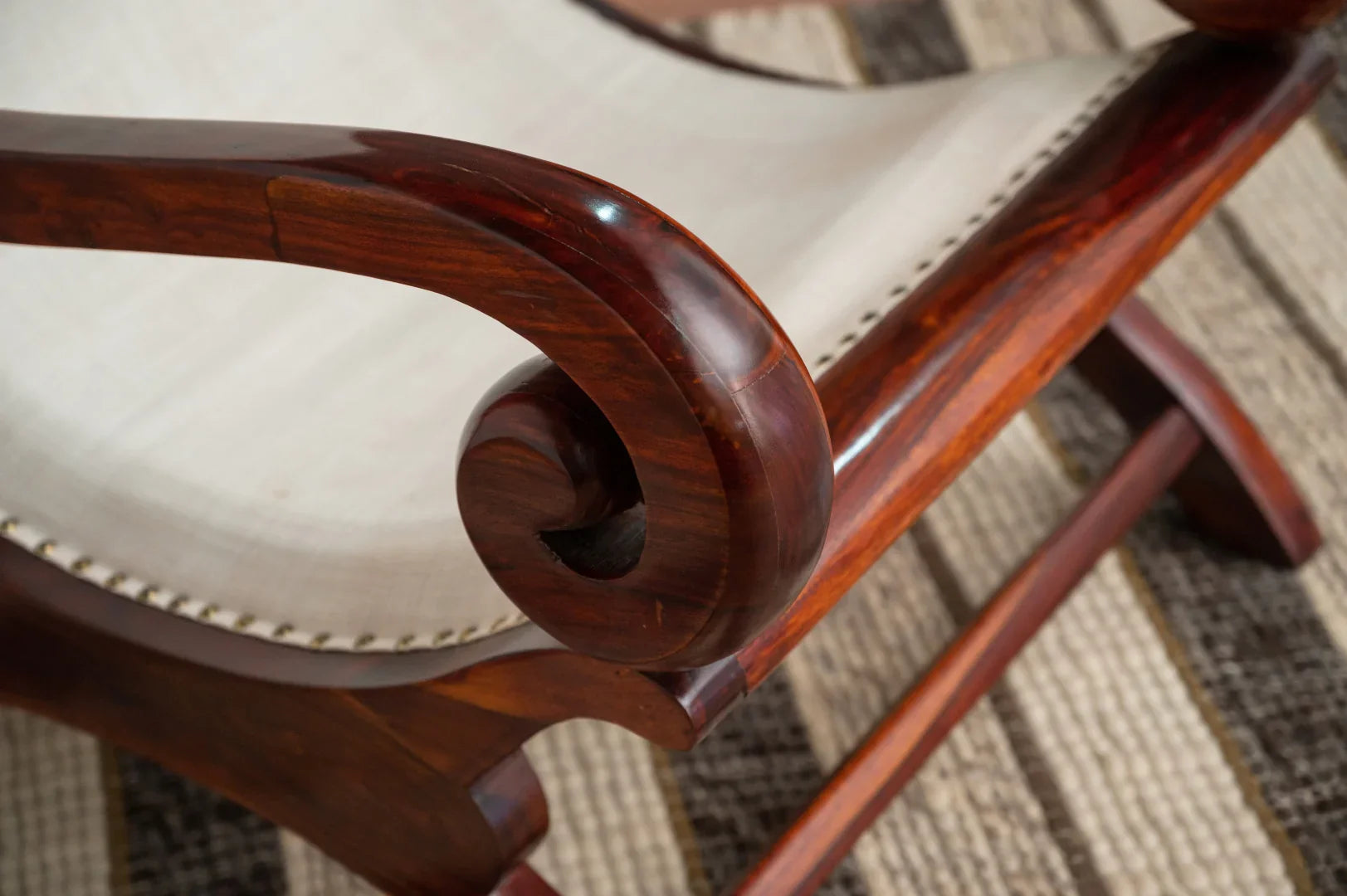 Crafted from premium wooden material, the chair boasts durability and sophistication. The use of ebony wood, known for its dark and rich color, adds a touch of elegance and luxury to the overall design.