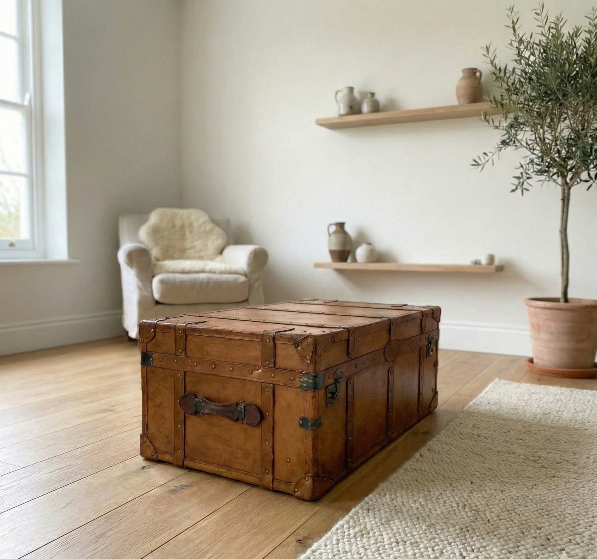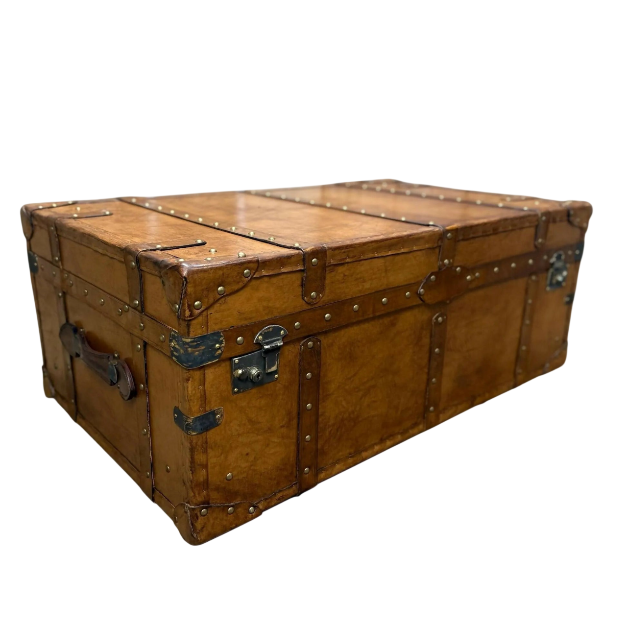 This elegant vintage-style trunk side table blends classic charm with practical design. Wrapped in rich brown leather with fine stitching and buckle strap details, it brings an old-world travel aesthetic into modern interiors. The sturdy box structure offers hidden storage inside, making it perfect for keeping books, accessories, or essentials neatly organized. Its flat top works beautifully as a side table, coffee table, or decorative accent—ideal for living rooms, bedrooms, or boutique-style spaces.