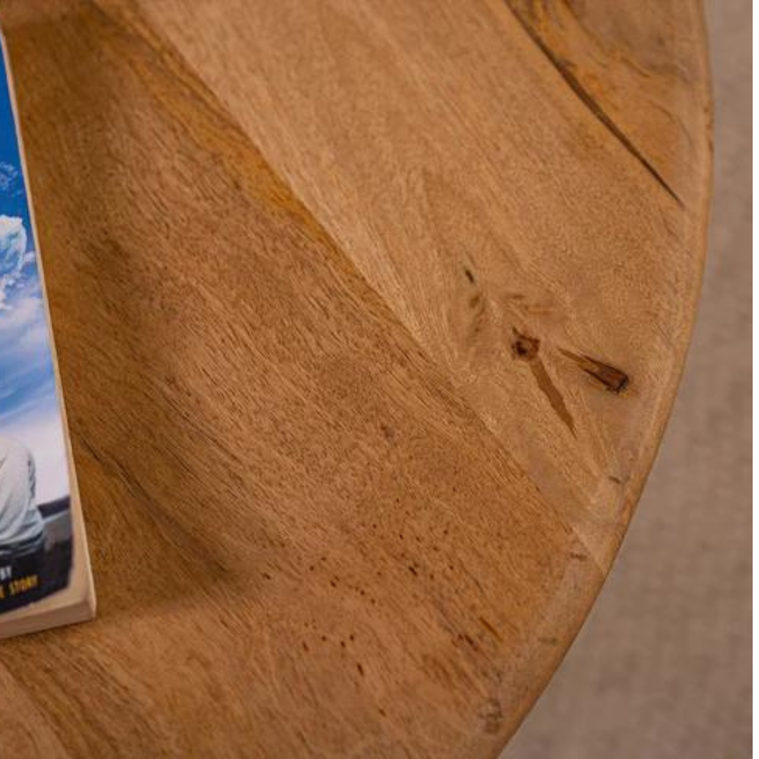The tabletop is circular in shape, providing a visually pleasing and symmetrical centerpiece for your living room. The smooth and polished surface of the table showcases the natural variations of the wood, making each coffee table a one-of-a-kind creation.
