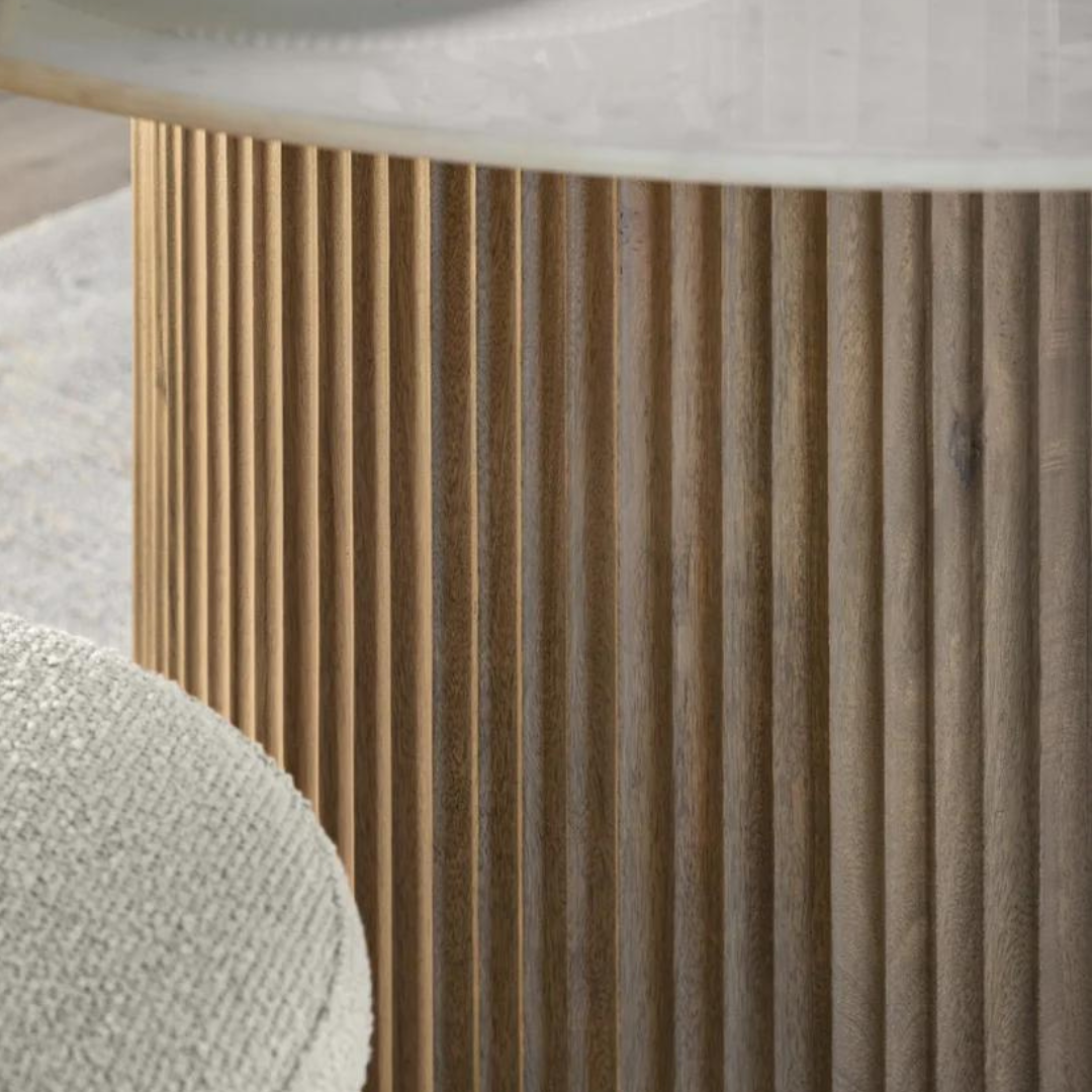 Antalya Modern Fluted Round Marble Top Dining Set With Boucle Chairs