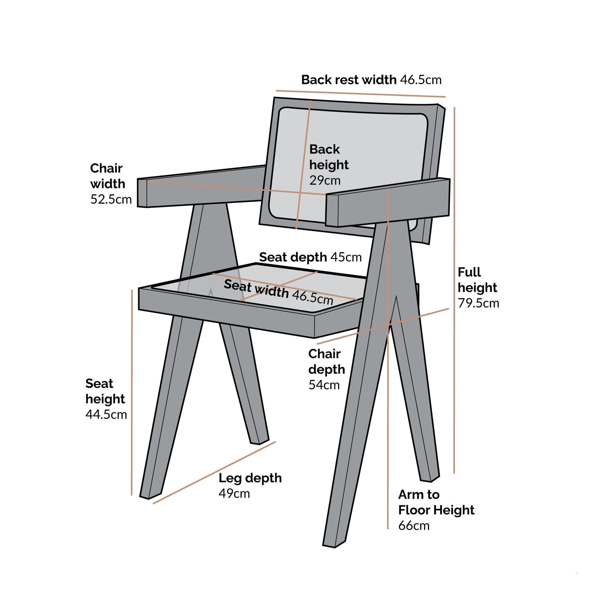 Classic Rattan Solid Wood Arm Chair - Light Walnut Finish