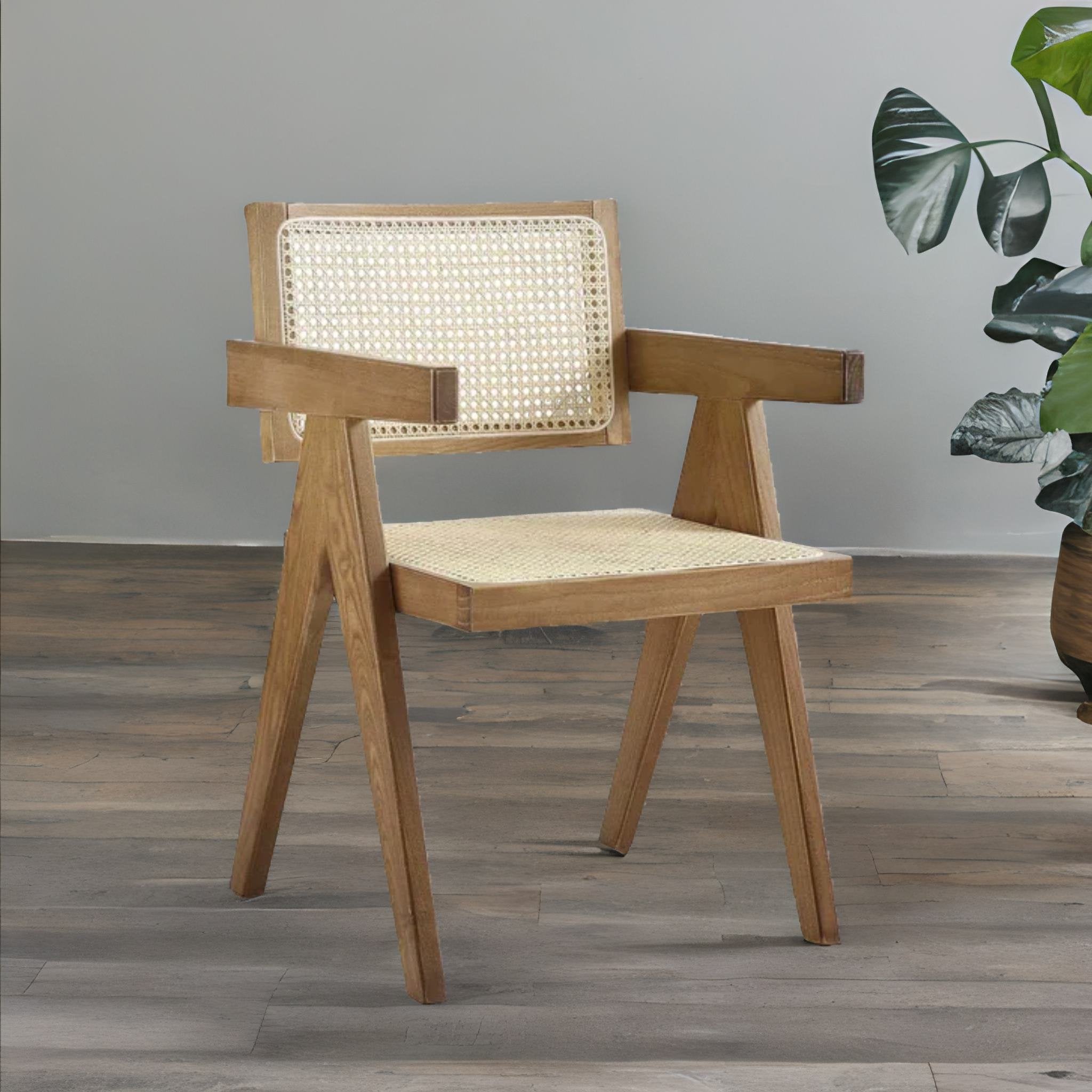 Classic Rattan Solid Wood Arm  Chair - Light Walnut Finish