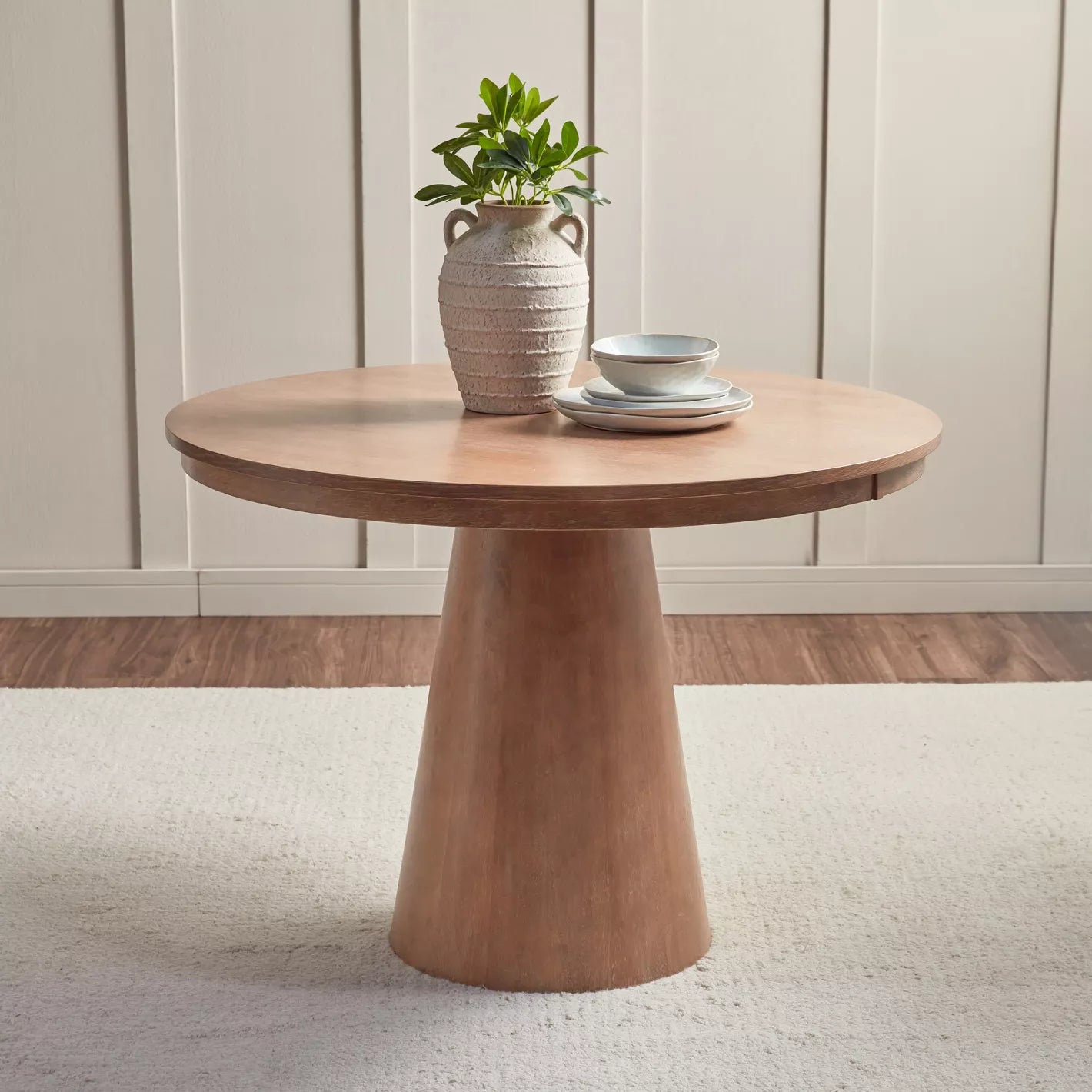 Antalya Modern Solid Wood 4 Seater Round Dining Table Set
