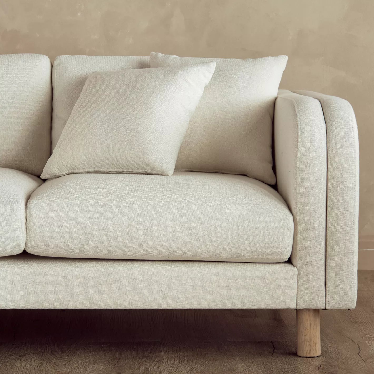 Modern Solid Wood 2 Seater Fabric Sofa - Beige Finish
