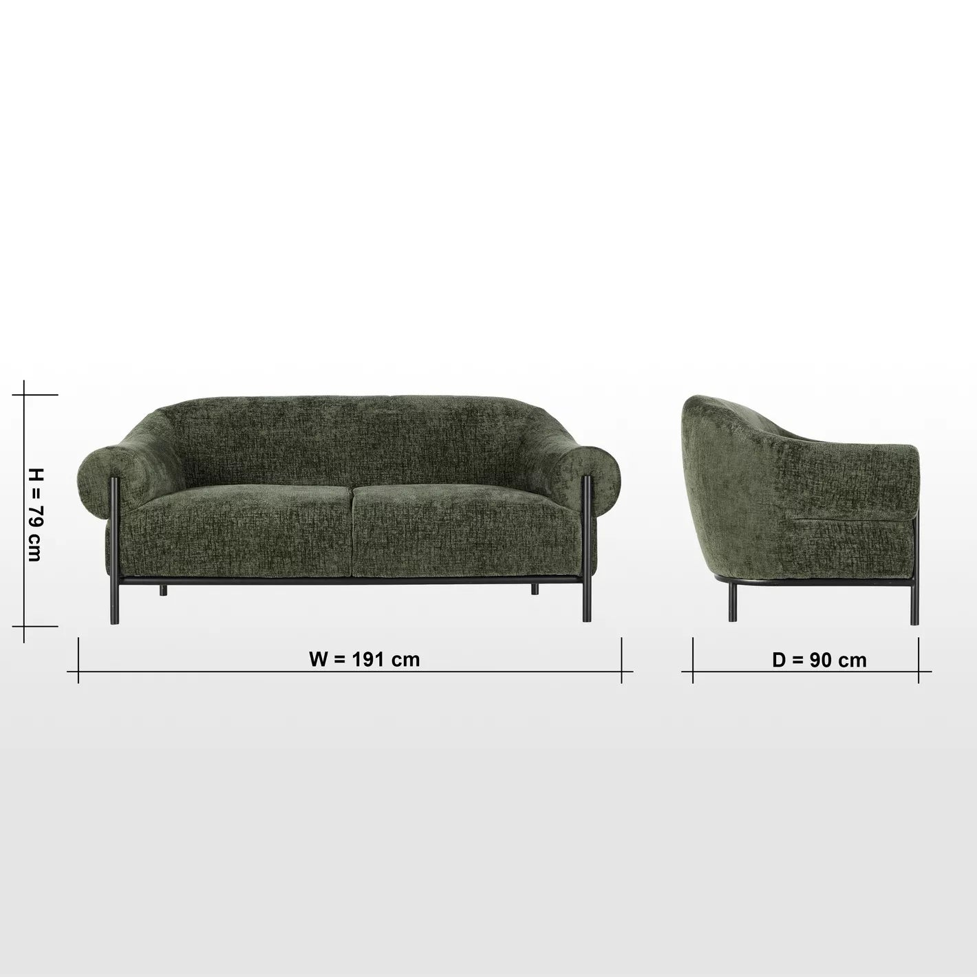 Modern Solid Wood 2 Seater Velvet Sofa - Green Finish