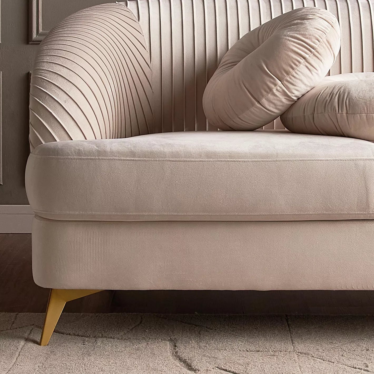 Modern Solid Wood Velvet 3 Seater Sofa - Beige Finish