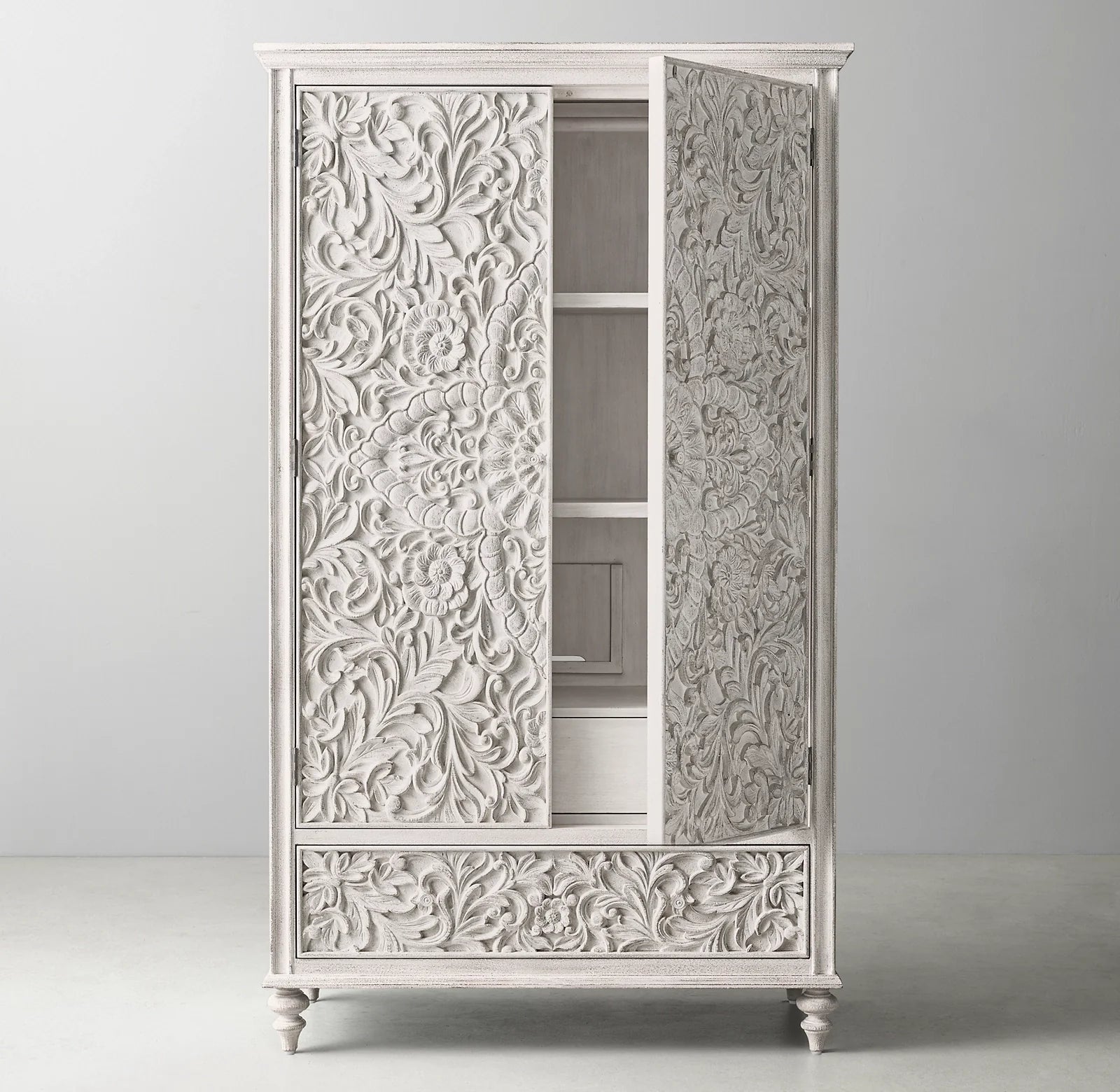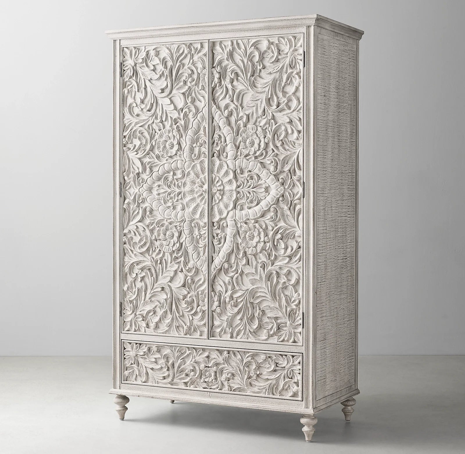 • Thanks to its floral design and details, our Solid Wood Double Wardrobe is the perfect way to add a sense of contemporary luxury combined with a touch of industrial style.