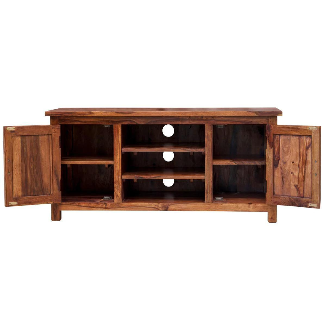 Made from high-quality solid wood, this TV unit is built to last, ensuring durability and longevity. The rich grain patterns and warm tones of the wood create a captivating visual appeal that enhances any room's aesthetic.